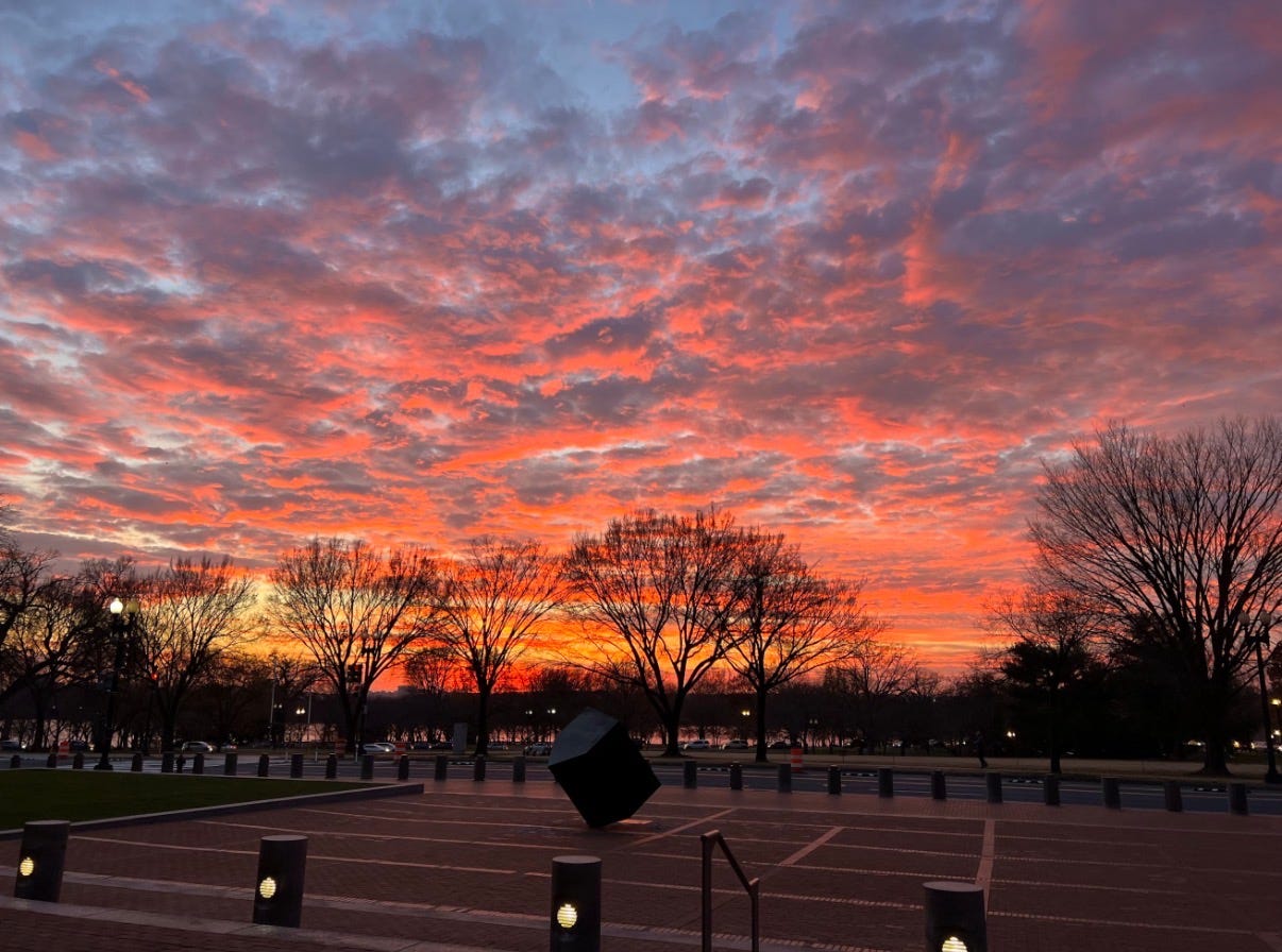 A memory from a previous visit comes to me. As I stood outside, I looked up and saw a beautiful sunset—a bright red sky painting Washington, DC. I felt hope.